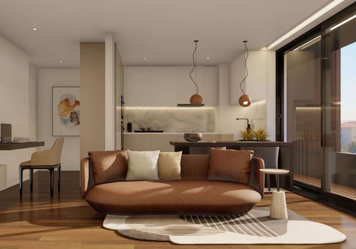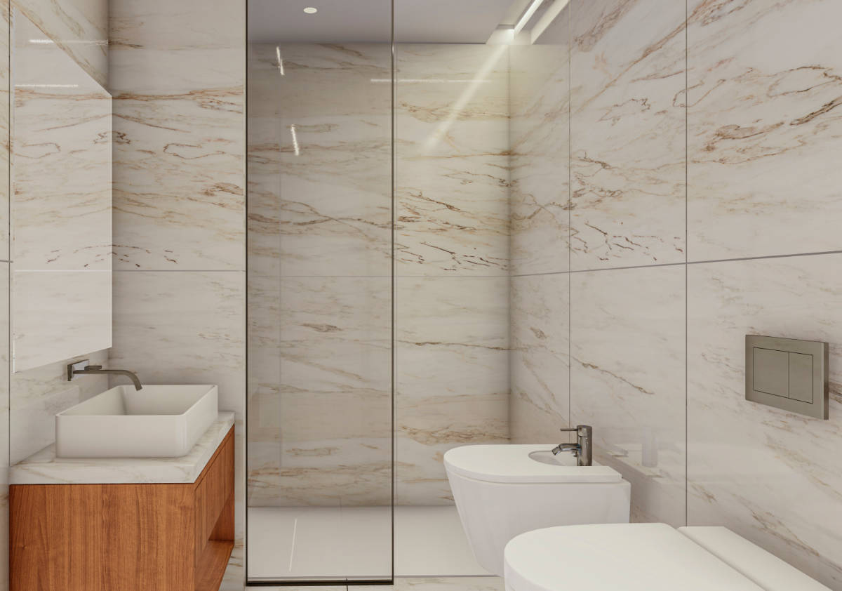 - Pavimento e paredes em material cerâmico retificado